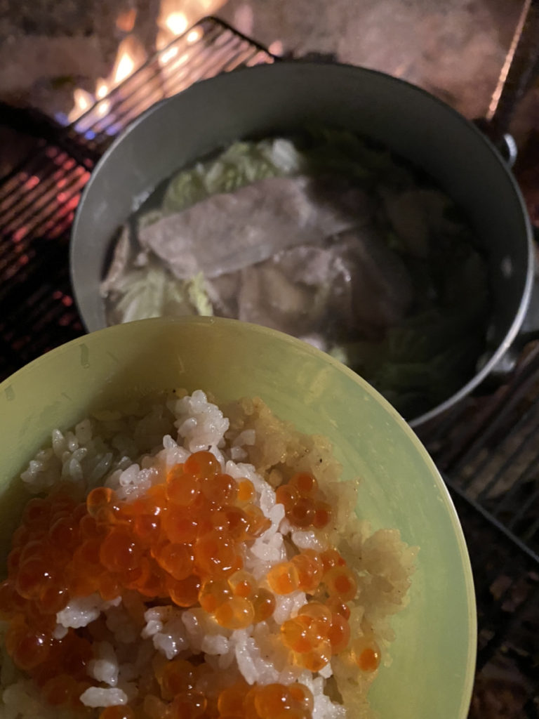 お鍋といくら丼セット。誰かのYou Tubeでいくら丼食べてたので、影響されて・・・笑!